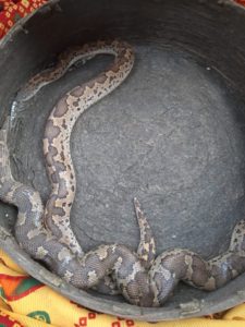 आज दिनांक 10 अगस्त 2019 को खूंटी जिला के लोधमा पंचायत के पाकी गांव प्रखंड कर्रा में राज्य जीव जंतु कल्याण बोर्ड के नोडल ऑफिसर डॉ शिवानंद काशी के माध्यम से कई विलुप्त प्राय प्रजाति के सांप जैसे Specteculated cobra , Red sand Bowa, Ornate flying sake, Indian rat snake, comman sand bowa