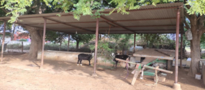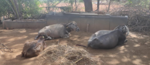 Fig. 1: Buffaloes are tied to manger in an open space under tree shadow