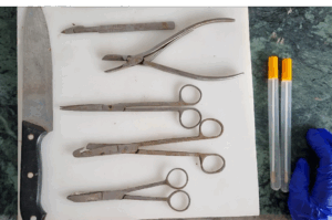 - Bone cutter and a saw.