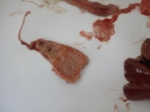 - The proventriculus and gizzard opened to check the presence of haemorrhage and other abnormalities.
