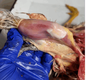 | Bumblefoot | Staphylococcus aureus | Abscess in foot pad | Lesion | ||||