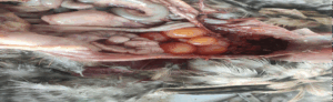 | Thrush | Candida albicans | Inflammation of crop with presence of white cheesy material | Pieces of crop and esophagus | ||||