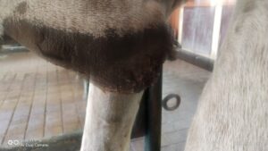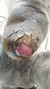 Chronic wounds are show no progress towards healing. These wounds may have prolonged or excessive inflammatory cells, continuous infections and the inability of cells to respond to reparative phase of wound healing. Pathological issues may also lead to non-healing wounds. Such wounds may require biomaterials to promote the healing. Autologous platelet rich plasma are such biomaterials which aids in promoting healing of the wound by providing growth factors like vascular endothelial growth factors, fibroblast growth factors, anti-microbial property (Sivani et al., 2023). In the present case advantage of PRP has been used for healing of the chronic wound in the domestic camel. There was good closure of the wound with scab formation and the complete wound healing was noticed about two weeks of post treatment (Fig.3).