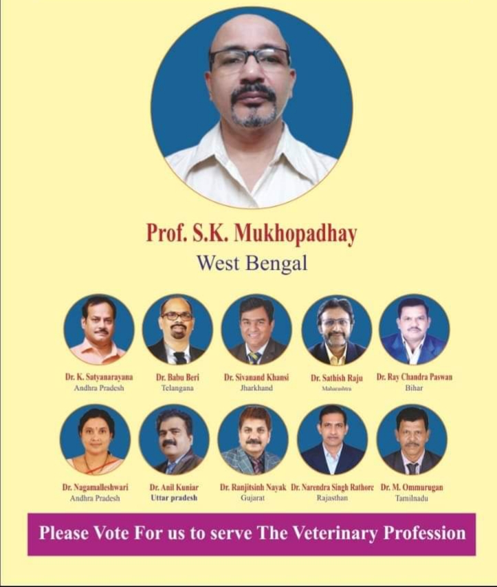 Prof. S.K. Mukhopadhyay, PhD, DICVP FIAVP, LMIVA, NAVS professor in the Department of Veterinary Pathology F/O Veterinary and Animal Science, WBUAFS, K.B.Sarani, Kolkata-37, West Bengal contesting for Veterinary Council of India Elections 2020 as a candidate for 11 members to be elected.