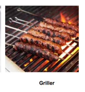 ७. ग्रिलर: यह इलेक्ट्रिक, गैस या चारकोल ग्रिल पर सीधे गर्मी (आग) पर नर्म मांस / मसालेदार मांस को पकाने की एक विधि है।