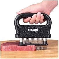 ९. ब्लेड टेंडरिज़र: यह सख्त मांस को नर्म बनाने की एक भौतिक विधि है। यहां, मांस के टुकड़ों/स्टेक को कई ब्लेडों के सेट के बीच दबाया जाता है जिससे ऊतक विघटन होता है