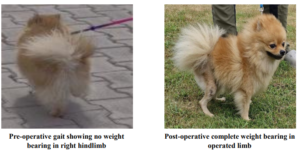 Minor post-operative issues such as localized swelling, temporary stiffness, and delayed return of full joint mobility were observed in a few dogs and were successfully managed with conservative care. One advanced case required prolonged rehabilitation due to concurrent joint pathology, reinforcing the importance of early diagnosis and timely surgical management to prevent secondary complications.