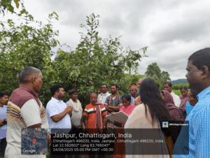 As part of the National Campaign “Mera Resham Mera Abhimaan (MRMA)”, a Field Demonstration and Farmer Interaction Programme was conducted at Hathghada on 24th August 2025. The programme was led by Dr. Nidhi Sukhija (Scientist-B, CSB-CTRTI, Ranchi) and Shri Shyam Kumar (Assistant Director, Sericulture, Jashpur).