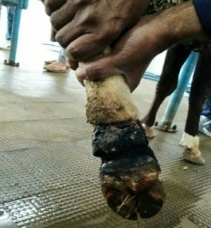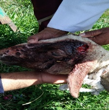 • Horn injury: depending on the extent of the horn injury, the horn may or may not grow back. Some horns injured at the base, or scurs that erupt from improper disbudding. It should be prepared to manage horn injuries, a first aid kit should include a blood stop agent, a wire saw, a sanding block, a cauterizing tool, gauze, wrap, antiseptics, antibiotics, pain management medication, and fly repellent. Get veterinary advice quickly.