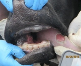 पशु की जीभ पर छाले, खुरों पर छाले और अत्यधिक लार गिरना