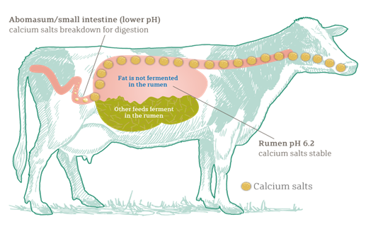 By pass fat is the most energy dense nutrient available that overcome the deleterious effect of fats having a low melting point on fiber digestibility, feed intake and absorption of magnesium and calcium. Bypass fat helps in overcoming this negative energy balance phenomenon. Rumen inert fat (Ca salt of fatty acid) is partially resistant to bio-hydrogenation by the rumen microbes and reduces the risk of metabolic acidosis.