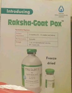 वायरस का कोई इलाज नहीं होने के कारण टीकाकरण Raksha Goat Pox 2ml SC ही रोकथाम व नियंत्रण का सबसे प्रभावी साधन है।