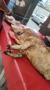 Fig.5. Photograph showing the marketing of pork of Yorkshire breeds in Beltola area of Guwahati, Assam.