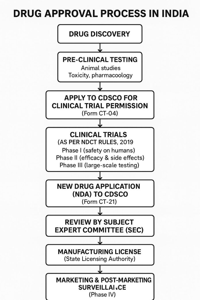 This process ensures that every new drug in India is tested thoroughly for safety and effectiveness before public use.