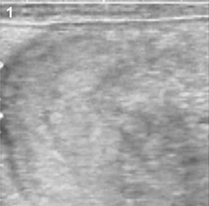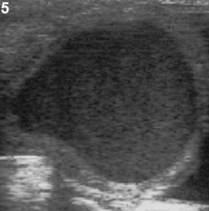 The exploration of the uterus in the non-pregnant female aims to either determine the stage of the oestrous the uterus (Beal et al., 1992). The histology of the uterus determines its echogenicity as the submucosa can be visualized as an anechoic layer beneath the endometrium. During the follicular phase, under the influence of oestrogens, the blood vessels in the submucosa become hyperaemic, the endometrium becomes oedematous, increasing its thickness, and the anechoic vascular zone is more easily visualized. The content of the uterine lumen may also vary during the oestrous cycle, being typically absent during the luteal phase, whereas a small amount of fluid may be present during the follicular phase (Barlund et al., 2008). Apart from the oestrus phase various pathologies and pregnancy status can also be visualised through ultrasonography (Fig: 5)