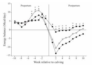 Dry period (DP) between lactations is necessary to achieve maximum milk production. To maximise milk yield during the ensuing lactation a two-month dry phase is required (Sorensen and Enevoldsen 1991). Intake of dry matter drastically drops the week before parturition (Bertics et al., 1992), resulting in a decrease in energy intake at a critical point of time.