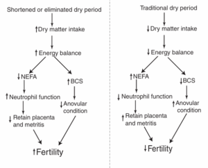 Fig 4: Model of the effect of shortening the dry period on fertility