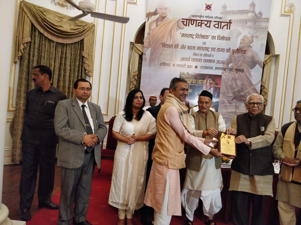 His Excellency the Governor of Maharashtra, Bhagat Singh Koshyari conferred very prestigious award “Acharya Chanakya -2020” upon Jayantilal Shah, Managing Trustee of a National Award winning NGO “Samast Mahajan” and a Member of the Animal Welfare Board of India(AWBI) today at Raj Bhavan Mumbai wherein former Governor of Uttar Pradesh, Ram Naik and other personalities were present. Girish Jayantilal Shah is a renowned social worker and animal welfare scholar has dedicated his life for the saving of thousands of suffering animals from natural calamities and running many schemes to save the homeless animals by arrangement of feed -fodder, water and health care services. His work for plantation and water conservation have been outstanding.