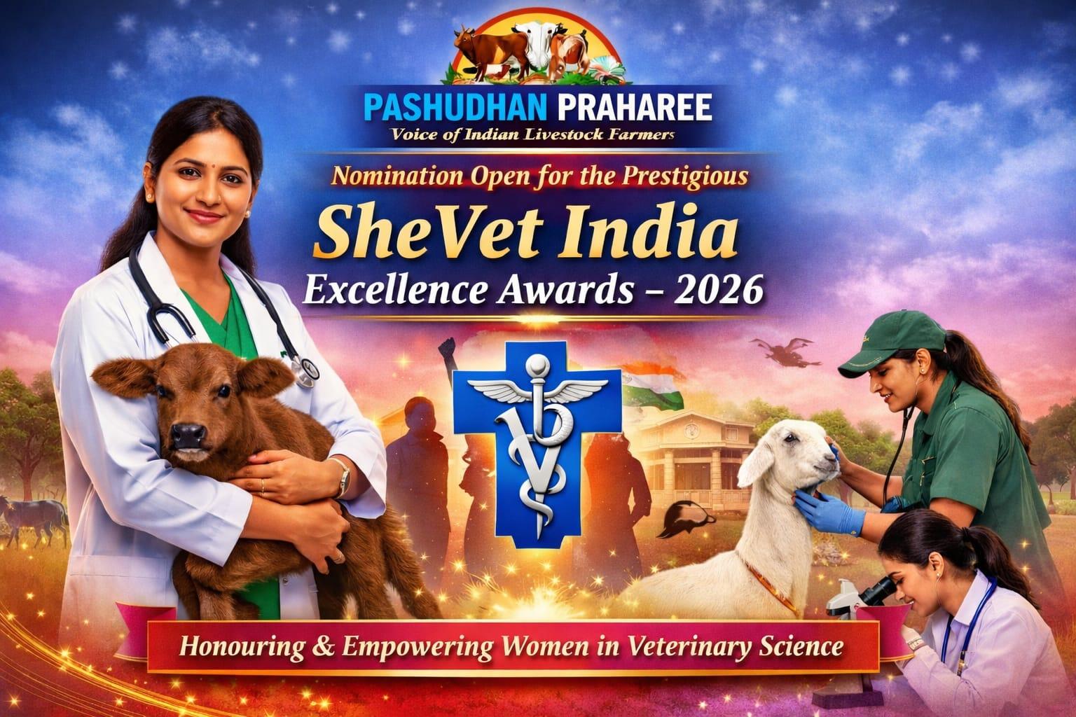 On the occasion of International Women’s Day – 8 March 2026, Pashudhan Praharee in association with Veterinary Association of India, CM SINGH Endowment Trust, Agrovet Research & Development Foundation & Goel Vet Pharma , proudly announces the SheVet India Excellence Awards – 2026, a national initiative dedicated to celebrating the courage, leadership, compassion, and professional excellence of Women Veterinarians and Lady Agri-Allied Professionals of India.