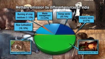 Methane is a potent greenhouse gases responsible for global warming.Various strategies likegenetic selection for production traits, feeding of highly digestible forages, use of feed additives, rumen manipulation andration balancing will reduce enteric CH4 emissionsand cause an increase in animal performance by conserving energy and reducing feed costs associated with animal maintenance. Ruminant animals loose about 4-12 per cent of gross energy intake in the form of methane, which is not only detrimental to environment but also results in energy loss to animals. Feeding a balanced ration can prevent this loss.