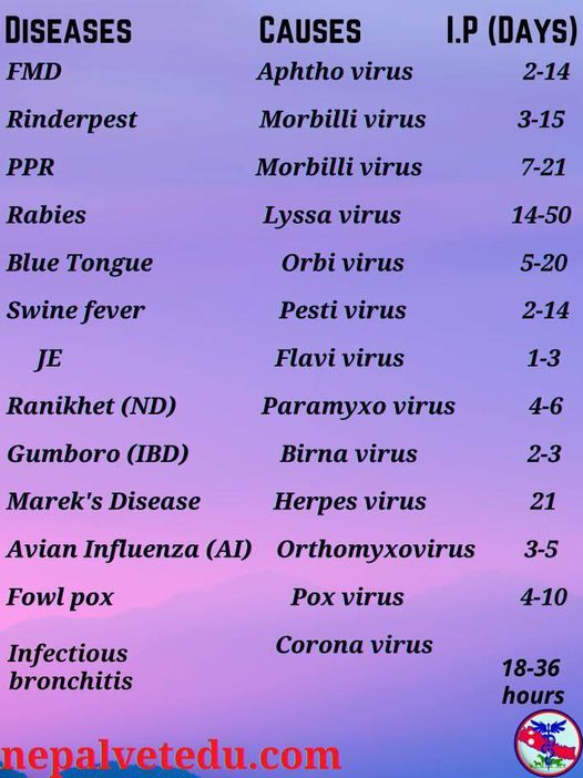 Veterinary Disease Incubation period (days)